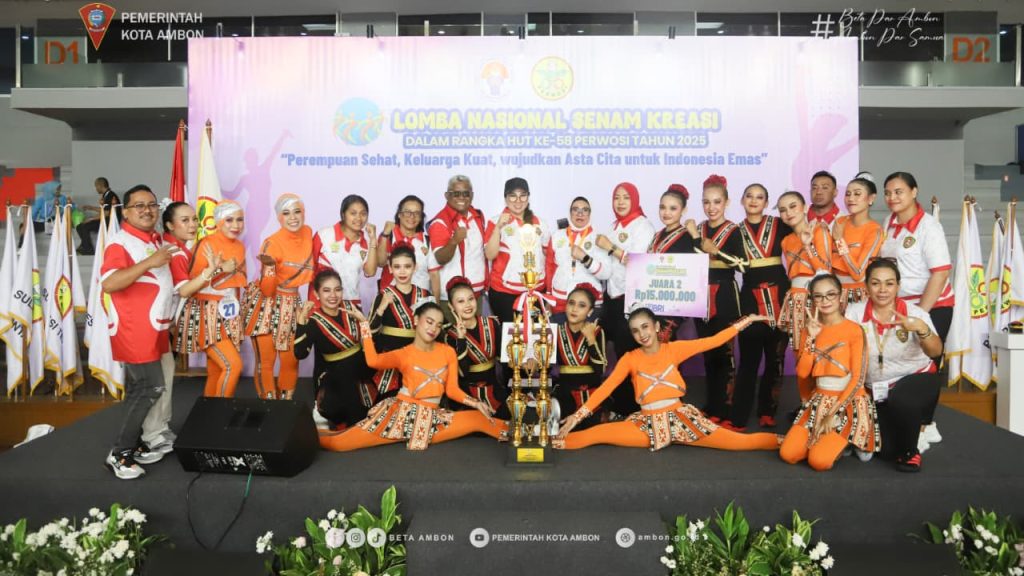 AMBON, PPID- Tim Kormi Ambon kembali meraih runner up (Juara II) pada lomba Nasional Senam Kreasi yang digelar Persatuan Wanita Olahraga Seluruh Indonesia (Perwosi) Pusat di Jakarta, Rabu (9/10/25).