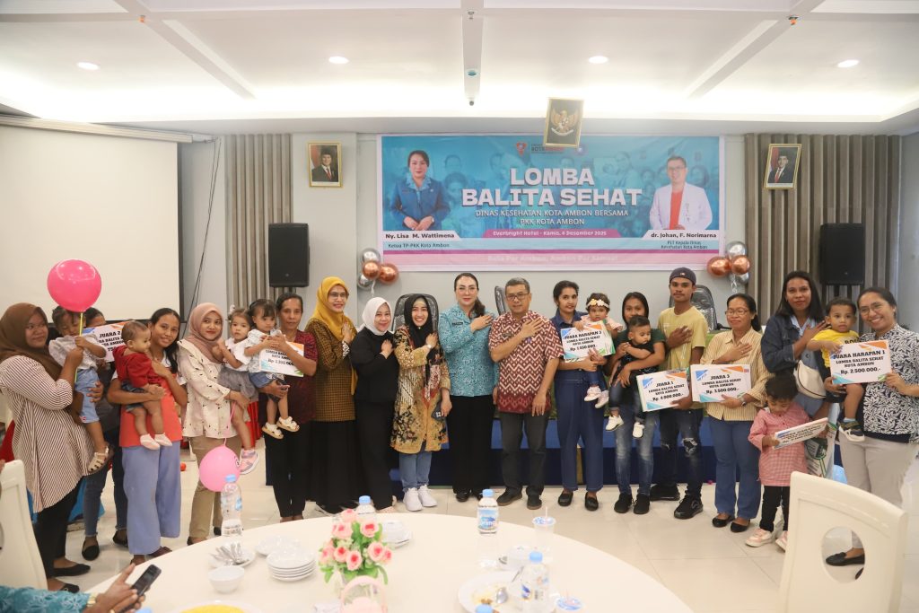 AMBON, PPID– Dalam upaya memberikan edukasi kepada orang tua terhadap pola asuh yang tepat, serta meningkatkan kualitas Kesehatan anak sejak dini, sekaligus menekan angka stunting. Maka, Pemerintah Kota (Pemkot) Ambon, melalui Dinas Kesehatan (Dinkes) menggelar Lomba Balita Sehat 2025. Kegiatan ini berlangsung di Everbright Hotel, Kamis (04/12/25).